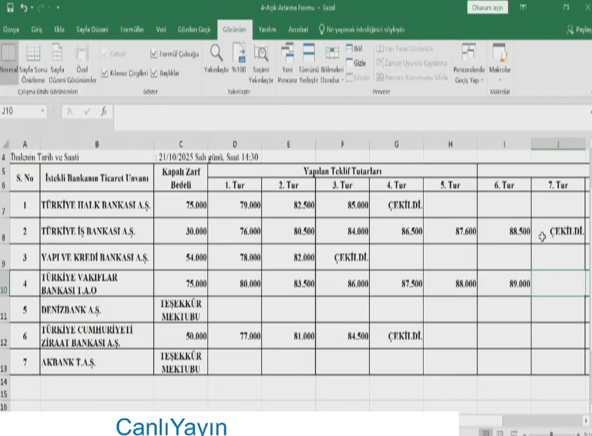 İş Bankası, en yüksek 88 bin 500 TL teklifi vererek 7. turda ihaleden çekildi.