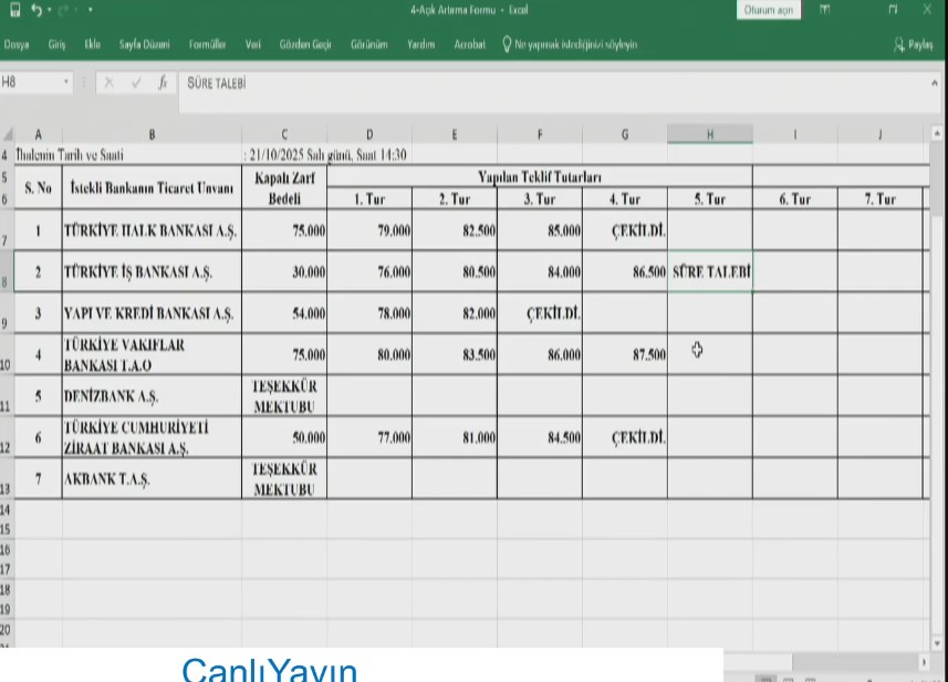 Açık artırma süreci başladı ve bankalar, ilk teklifleri üzerine yeni teklifler sundu.