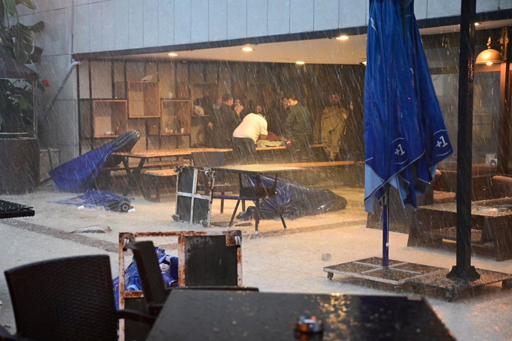 Bazı işletmelere ait masa ve sandalyeler etrafa savrularak büyük bir karışıklık oluşturdu.