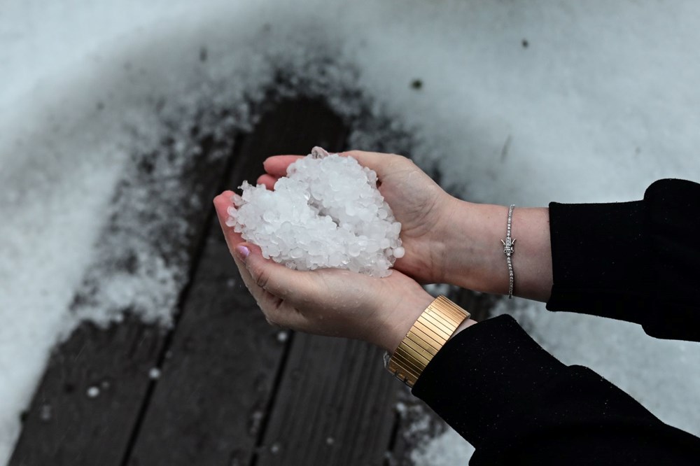 Konyaaltı ilçesinde, yaklaşık 15 dakika süren dolu yağışı, çevreyi beyaza bürüdü.