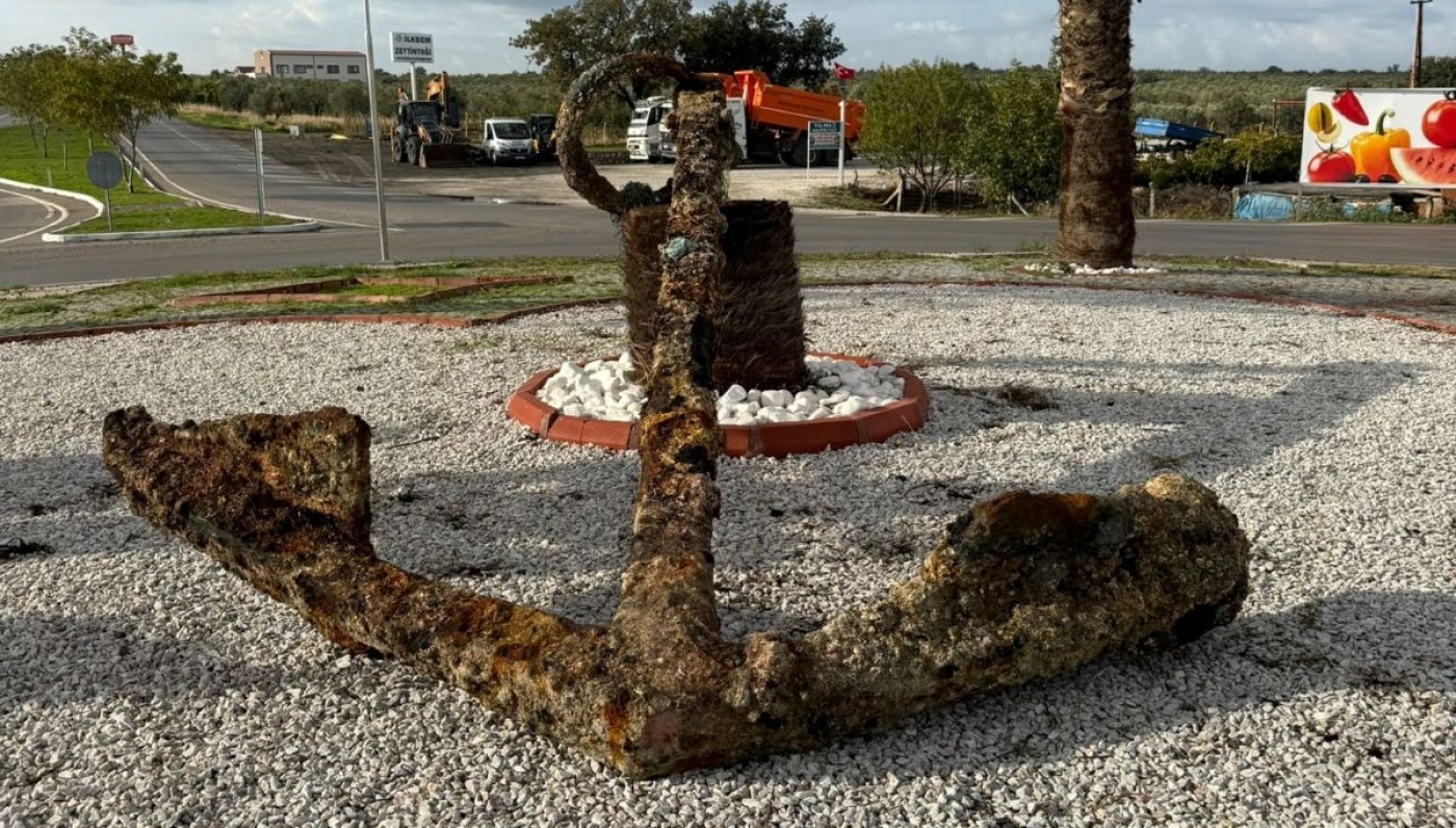 Oruçoğlu, büyük bir gemiye ait olduğu düşünülen bu çapanın yıllar boyunca denizde kaldığını ve şu anda beldenin döner kavşağında bulunduğunu ifade etti.