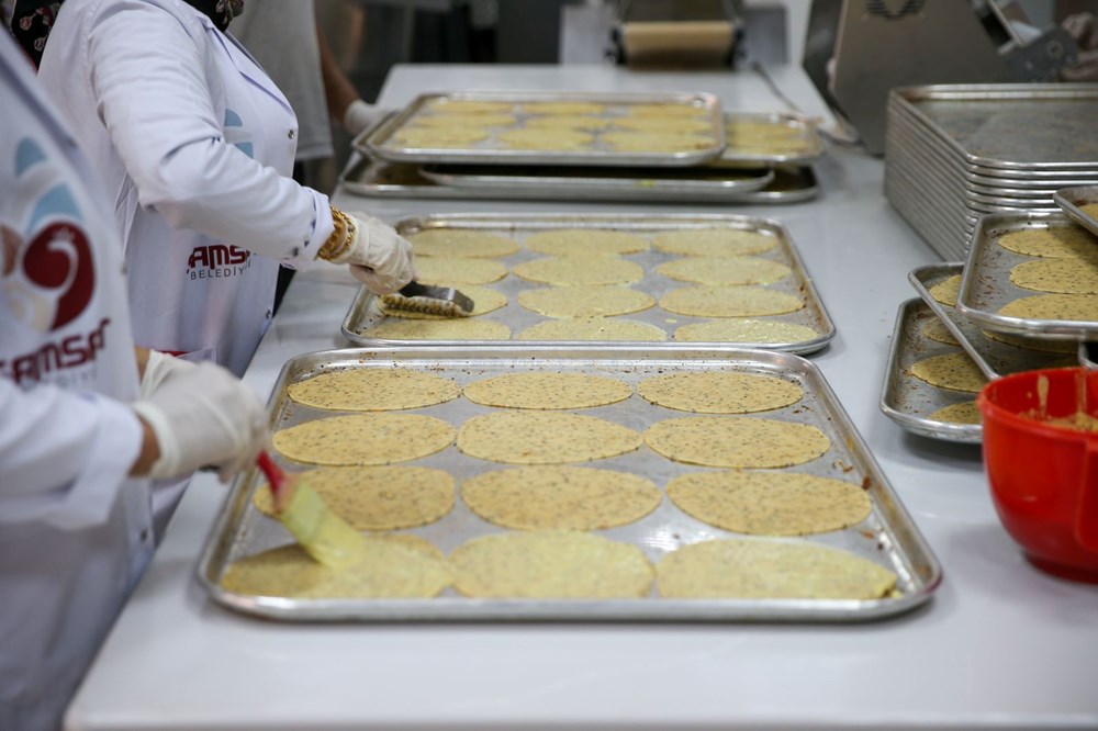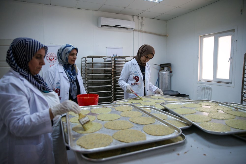 İpekyolu Samsat "Samsat Çöreği" Geçim Kaynağı Tesisi'nde istihdam edilen 12 kadın, un, rezene, susam, çörek otu, tuz, bitkisel susuz yağ ve sarı gelin otu ile üretim yapmaya başladı.
