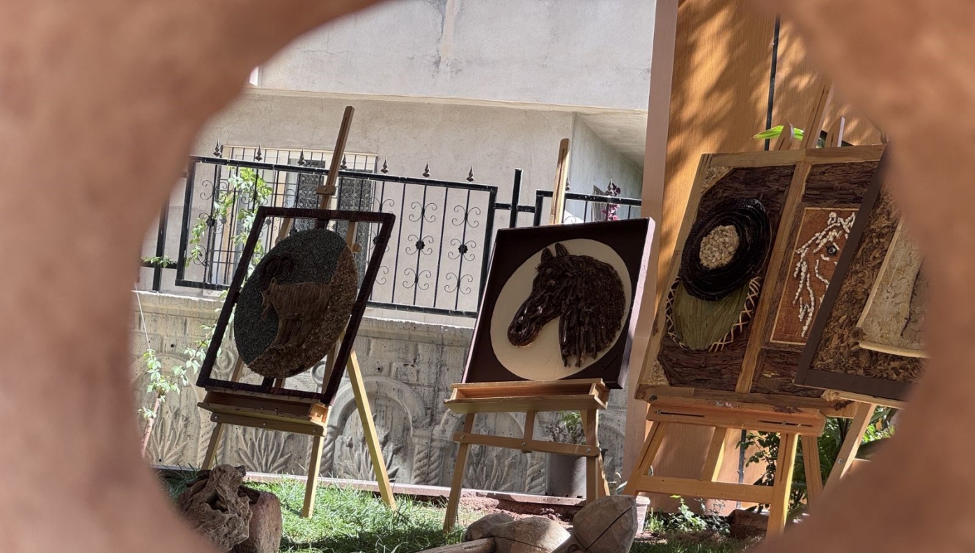 Silopi'de yaşayan Sidar, doğadan topladığı taş, toprak, yaprak ve ağaç dalları gibi doğal malzemelerle doğa ve hayvan temalı kabartma resimler oluşturmaya başladı.