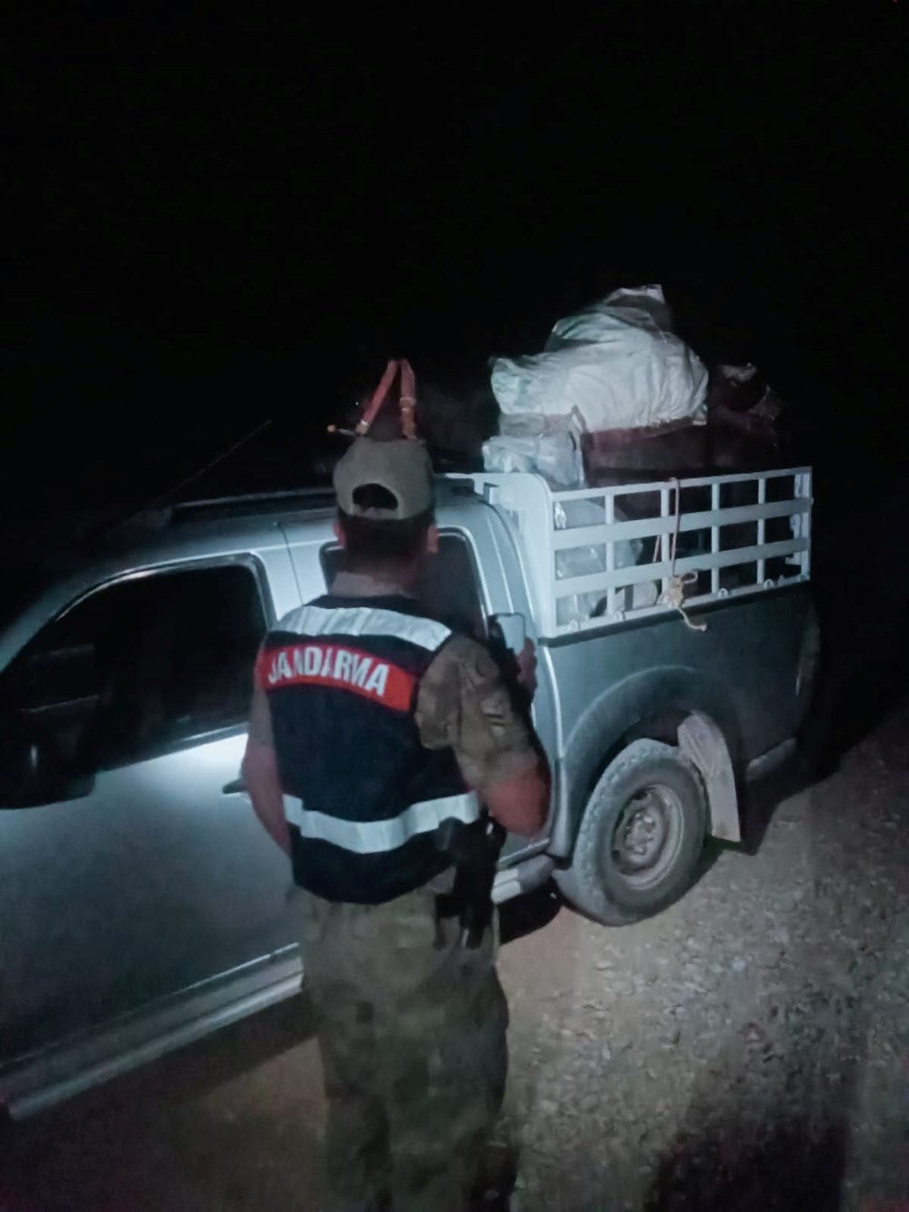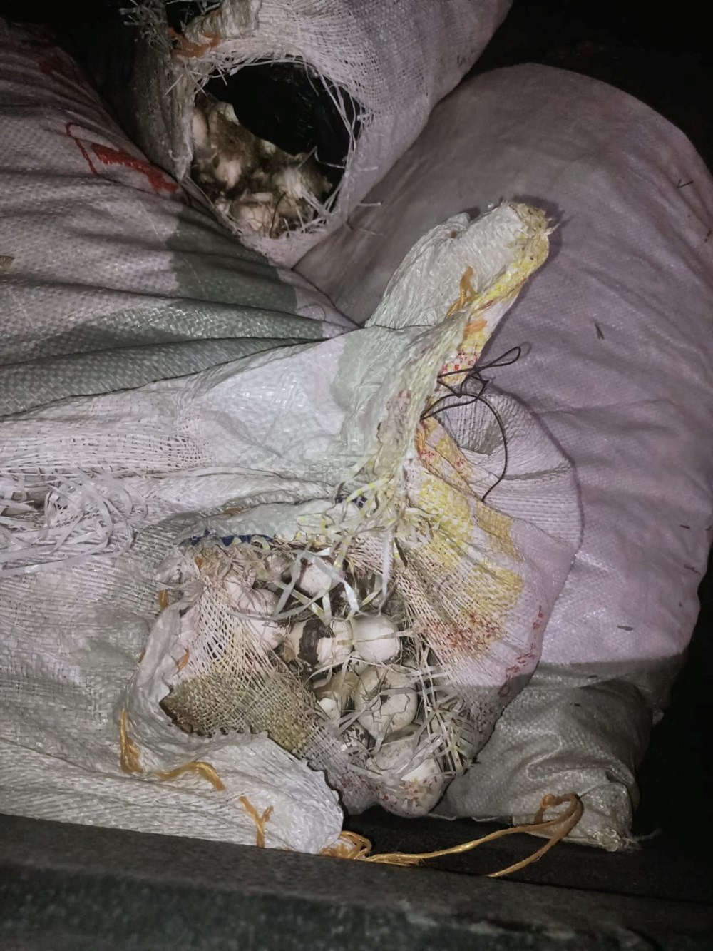Yapılan araç incelemesinde 5 çuval içerisinde toplamda 200 kilogram dağ sarımsağı ele geçirildi.
