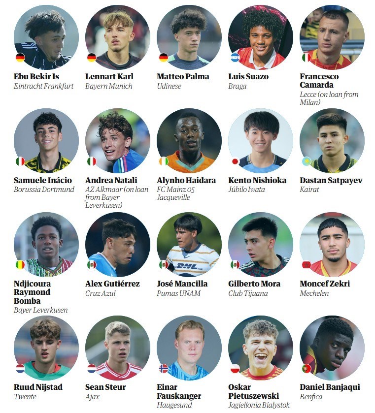 Bu prestijli listede, PSG'den Ibrahim Mbaye, Bayern Münih'ten Lennart Karl, Dortmund'dan Samuele Inacio, Barcelona'dan Toni Fernandez ve Porto'dan Bernardo Lima gibi isimler bulunuyor.