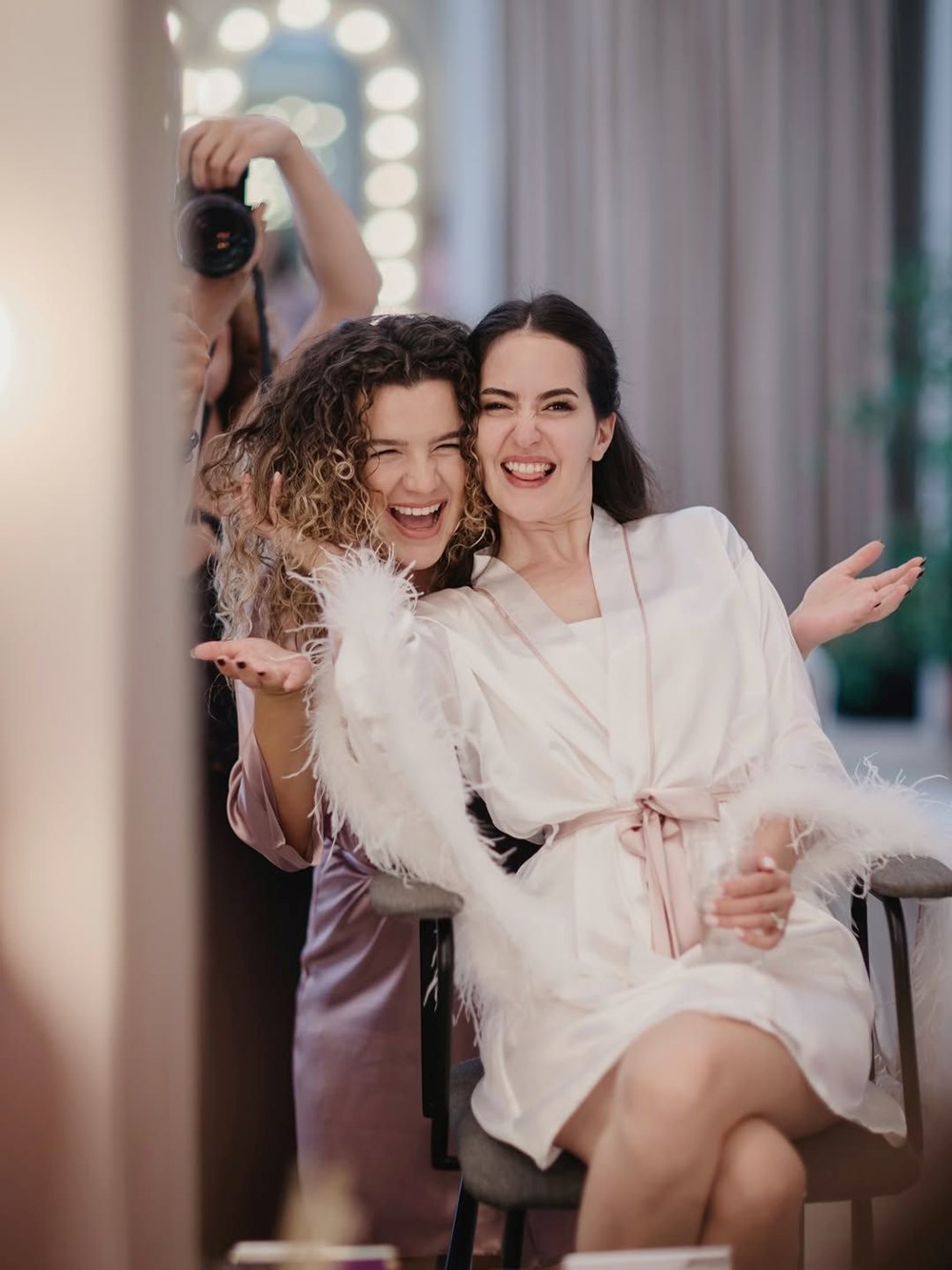 Ünlü isim, nedimeleriyle çekilmiş fotoğraflarını ve saç makyajı sürecindeyken çekilen görüntülerini ilk kez gösterdi.