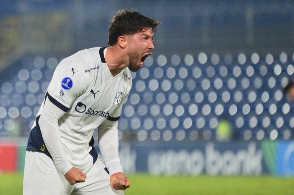 Felipe Loyola'nın, Guarani ile Independiente arasında oynanan Sudamericana maçında yaşadığı gol sevincini gösteren bir an.