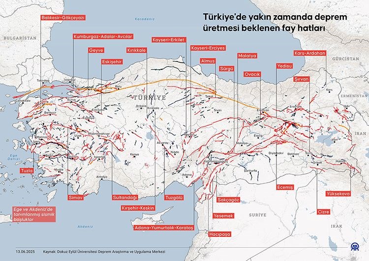 Sözbilir, Türk kara sularında yer alan bu büyük fayların henüz kırılmadığını ifade ederek, "17 fayın her biri diri fay sınıfında değerlendirildiği için bunlar, deprem üretme potansiyeline sahiptir," yorumunda bulundu.