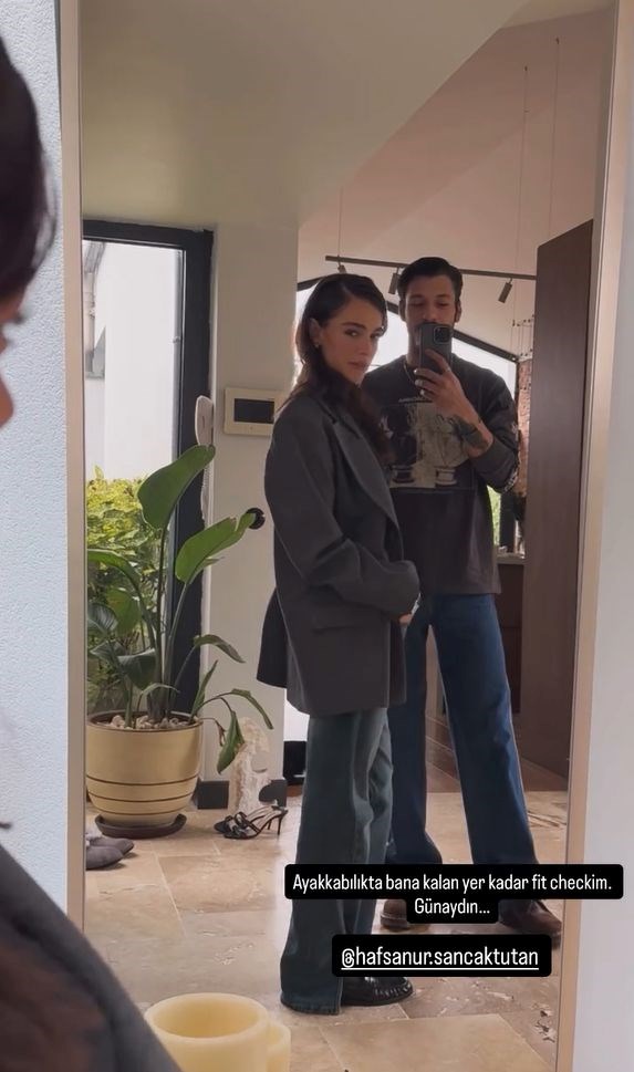 Ayna karşısında kombinlerini sergileyen çift, Kubilay Aka paylaşımına "Ayakkabılıkta bana kalan yer kadar fit checkim. Günaydın" yazdı.