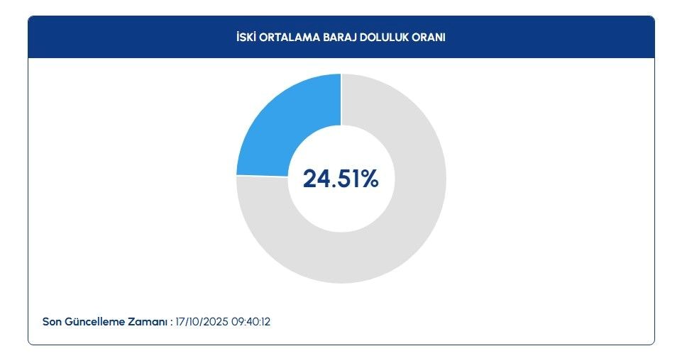 İstanbul genelinde ortalama baraj doluluk oranı yüzde 24,51 olarak kaydedildi. Terkos Barajı, mevcut su kapasitesinin yüzde 27,36'sını kullanırken, Ömerli Barajı ise yüzde 18 doluluk seviyesinde dikkat çekti. Barajların güncel doluluk oranları ise şu şekildedir: