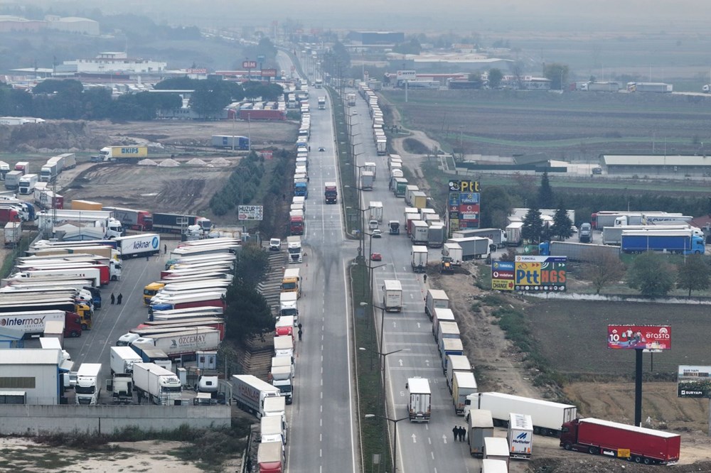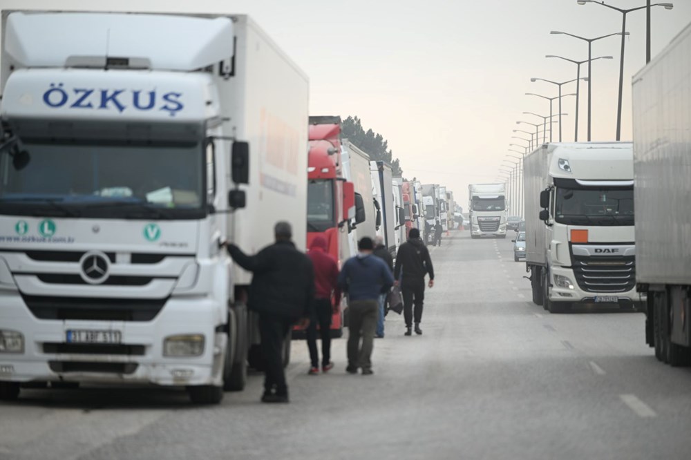 Park alanlarında yer bulamayan yüzlerce TIR, Kapıkule kara yolu boyunca çift yönlü olarak 7 kilometre uzunluğunda bir kuyruk oluşturdu.