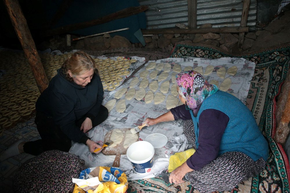 Yılmaz, kürülün genellikle yaylalarda yapıldığını belirterek, "Şu anda yaylalara çıkan yok, bu mevsime kaldı. Akşamdan havaya göre program yapılıyor. Kime yapılacak, ne kadar yapılacak belli. Hamurun erken saatte yoğurulması gerekiyor. Hamurda kullanılan süt, tereyağı ve kaymak, kendi yaptığımız ürünler." şeklinde konuştu.