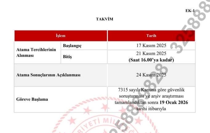 Ataması yapılan öğretmenler, güvenlik soruşturması ve arşiv araştırmasının tamamlanmasının ardından 19 Ocak 2026 itibarıyla görevlerine başlayacaklardır.