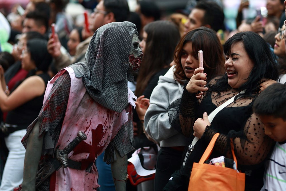 Bu geleneksel etkinlikte katılımcılar, zombi ve çeşitli korku filmi karakterlerinin kostümleriyle yürüyerek şehir sokaklarını doldurdu.
