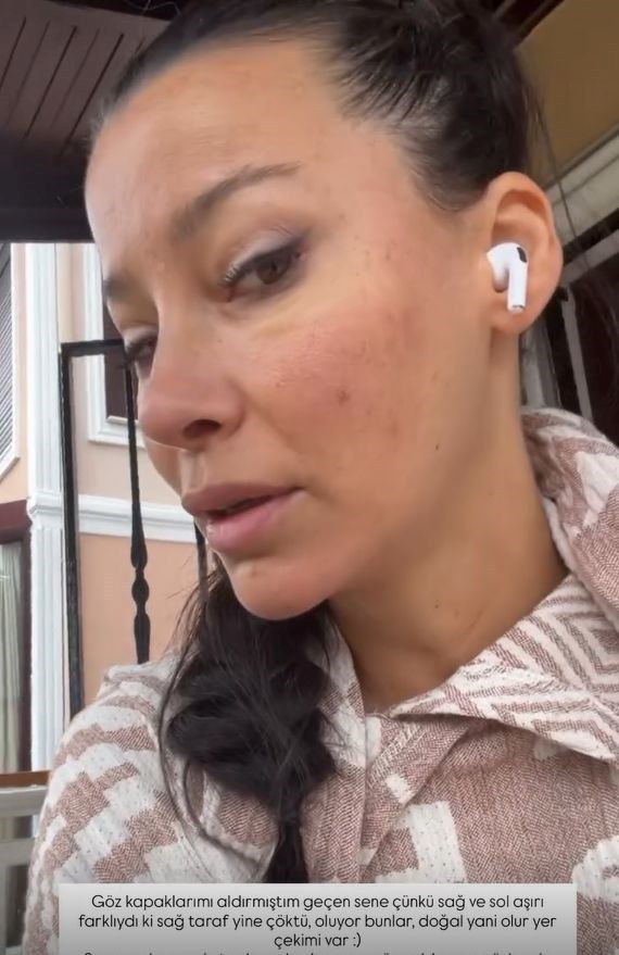 Geçtiğimiz yıl, sağ ve sol göz kapaklarının farklı olması nedeniyle göz kapaklarını aldırdığını belirten Müjde Uzman, "Sağ taraf yine çökmüş. Bunlar oluyor" dedi.