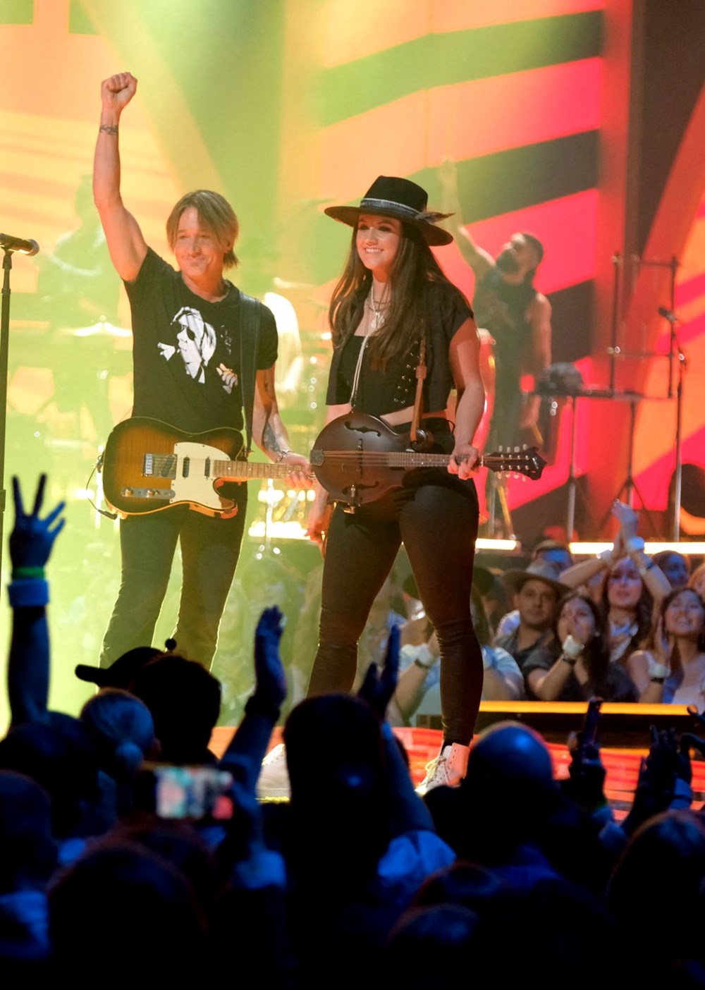Urban, perşembe akşamı Pennsylvania’nın Hershey kentindeki Giant Center'da düzenlenen konserde, eşi ve çocuklarıyla birlikte "Heart Like a Hometown" şarkısı eşliğinde bir aile pozu verdi.