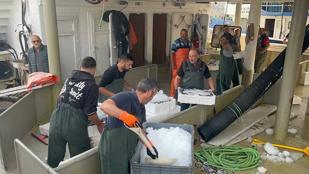 Karadeniz'de hamsi bolluğu fark ediliyor. Gece saatlerinde denize açılan balıkçılar, sabah erken saatlerde limana kasalarca hamsiyle geri döndü. Kasalanan ve buzlanan hamsiler, tek tek kamyonlara yüklendi.