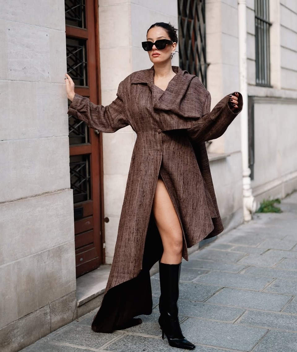 39 yaşındaki Pelin Akil, Paris sokaklarında kahverengi pardesüsü ve siyah çizmeleriyle objektiflere poz verdi.