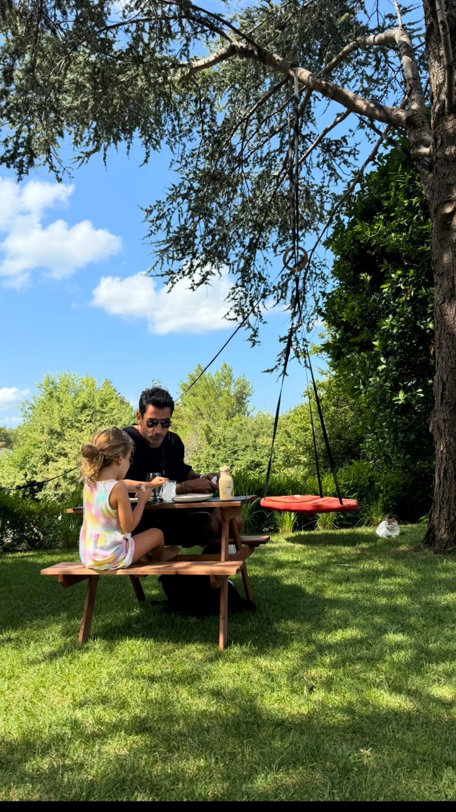 Sinem Kobal, bahçede keyifli anlar geçiren Kenan İmirzalıoğlu ve kızı Lalin'i görüntüledi.