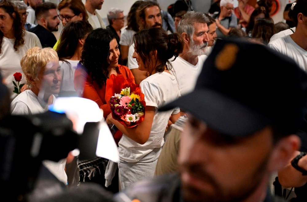Eski Barselona Belediye Başkanı Ada Colau, Katalonya Cumhuriyetçi Solu (ERC) partisinin Barselona Belediyesi meclis üyesi Jordi Coronas ve Compromis partisinden Valensiya özerk yönetim parlamentosu üyesi Juan Bordera'nın da bulunduğu aktivistler, Madrid'deki Adolfo Suarez Barajas Havalimanı'nda büyük bir kalabalık tarafından karşılandı.
