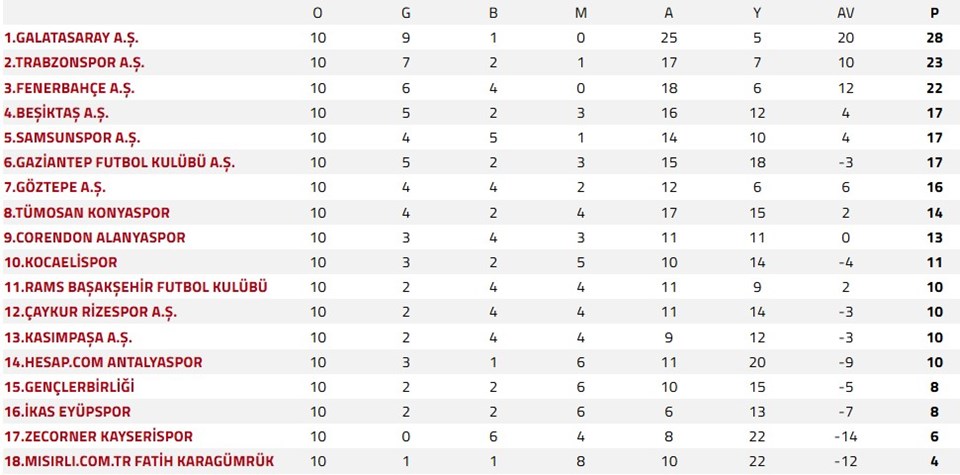 Süper Lig'in 10. Haftası: Sonuçlar, Program ve Puan Durumu ile Karşınızda!