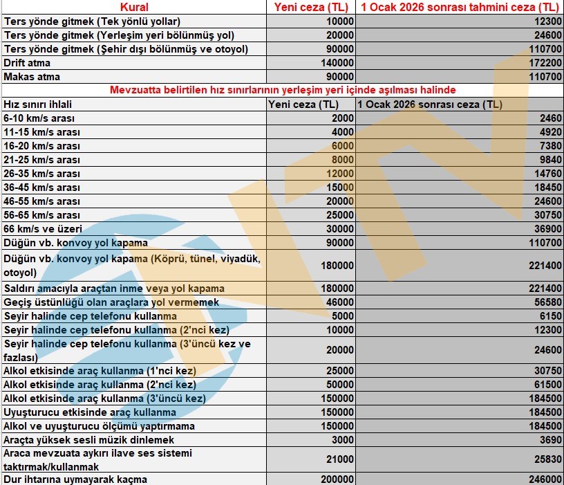 1 Ocak 2026 tarihinden itibaren yeniden değerleme oranı devreye girecek ve ceza, harç gibi ücretlerin yaklaşık olarak yüzde 23 oranında artması bekleniyor. Bu tarihten sonra kanundaki diğer değişikliklerle birlikte trafik cezalarının yeniden yükselebileceği öngörülüyor.