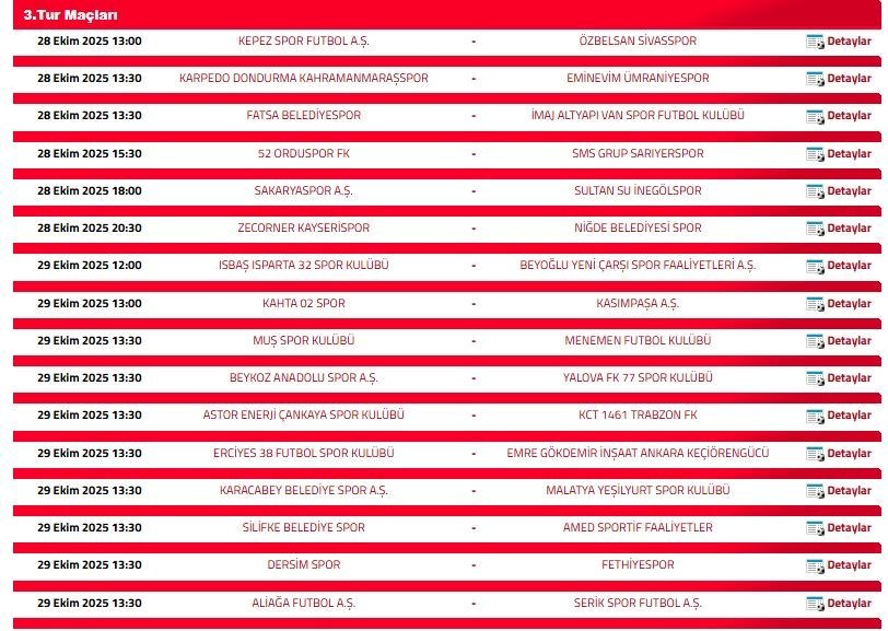 Türkiye Futbol Federasyonu (TFF), kura çekimi sonrasında Türkiye Kupası 3. eleme turu ile ilgili bilgileri resmi olarak paylaştı. Bu aşamada toplamda 56 takım mücadele edecek. Seri başı olan 28 takımın bulunduğu eşleşmelerde, küçük numara çeken ekipler ev sahibi olarak maçlarını oynayacak. 3. eleme turu karşılaşmaları tek maç eleme sistemine göre gerçekleşecek. Peki, Ziraat Türkiye Kupası (ZTK) 3. tur maçları ne zaman, hangi saatte ve hangi kanalda yayınlanacak?